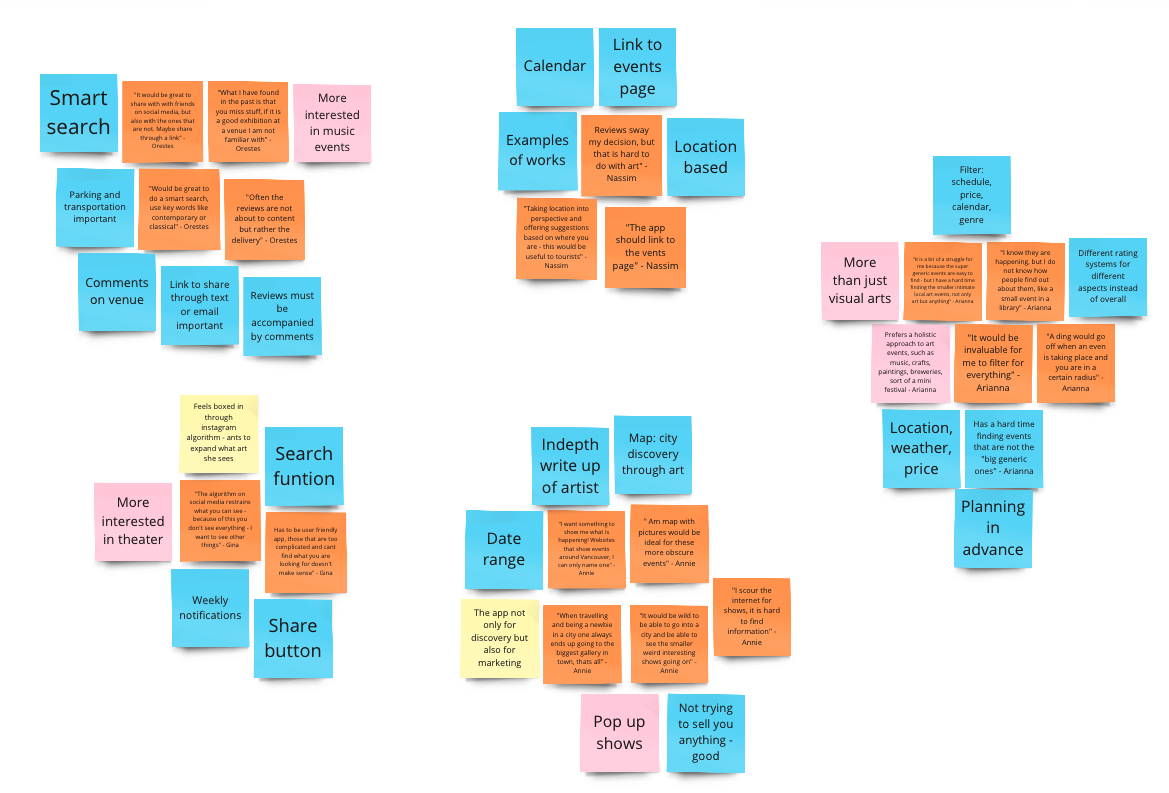 1. Interviewees want to be informed on many different types of art events. Varying from size of shows and genres.