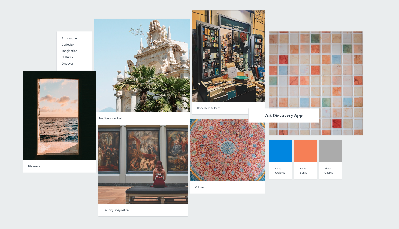 The subsequent stage in my design process involved crafting high-fidelity prototypes. The initial step in this endeavour was to establish a comprehensive style guide and a thoughtfully curated mood board.