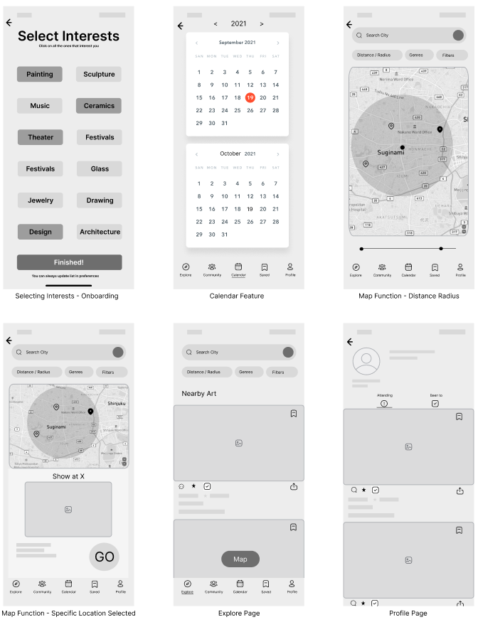 I researched and explored the market to find other apps and websites in the same space. Despite other options available, none of them shared the same focus on art exploration and community-building. Many of these platforms only covered large shows, overlooking smaller events featuring local artists.